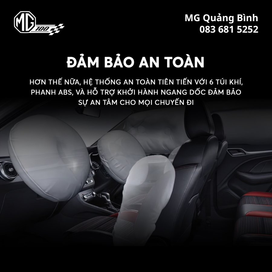 An toàn luôn là ưu tiên hàng đầu trên các dòng xe của MG, và MG ZS không phải là ngoại lệ. Xe được trang bị hệ thống 6 túi khí, mang lại sự bảo vệ toàn diện cho người lái và hành khách. Bên cạnh đó, MG ZS còn có camera 360 độ hiển thị 3D, giúp việc đỗ xe trở nên đơn giản và an toàn hơn bao giờ hết.Một loạt các tính năng an toàn thông minh khác như phanh tay điện tử, hệ thống kiểm soát áp suất lốp, và hỗ trợ giữ phanh tự động đảm bảo sự ổn định và an toàn tối đa trong mọi tình huống giao thông.