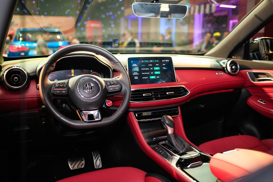 MG HS thu hút bởi thiết kế thể thao, lưới tản nhiệt lớn và cụm đèn LED hiện đại. Nội thất mang phong cách xe châu Âu: ghế thể thao bọc da, chi tiết ốp carbon và màn hình giải trí sắc nét.